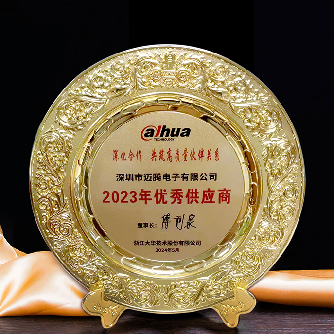 近日,大華股份隆重揭曉了“2023年優秀供應商”的名單,邁騰電子憑借其卓越的品質和持續的創新實力,榮獲了這一殊榮。